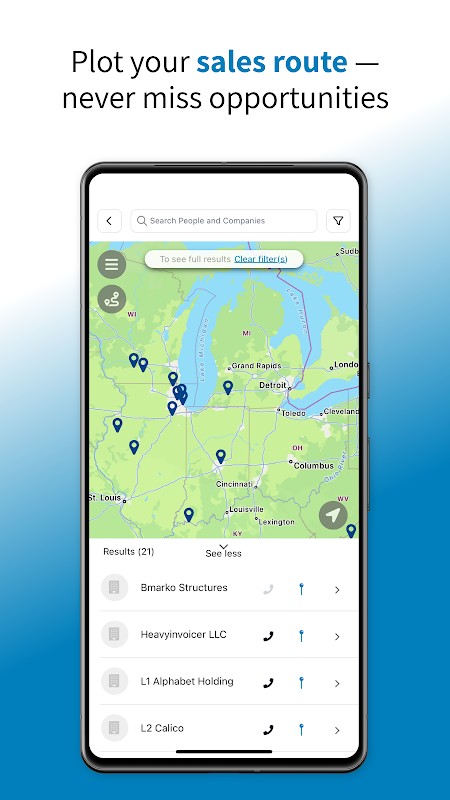 - Tính năng Định vị Địa lý: Lập bản đồ các chuyến thăm bán hàng và xem vị trí của khách hàng tiềm năng so với vị trí hiện tại của bạn chỉ bằng một cú nhấp chuột.