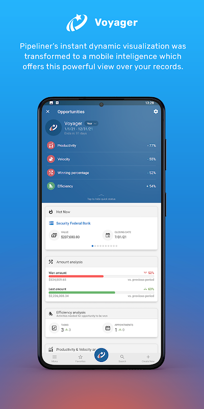 Xem tất cả danh bạ, tài khoản, khách hàng tiềm năng, cơ hội, nhiệm vụ và cuộc hẹn hoặc tin nhắn nguồn cấp dữ liệu - mà không cần chuyển đổi giữa Pipeliner CRM và thiết bị Android của bạn.
