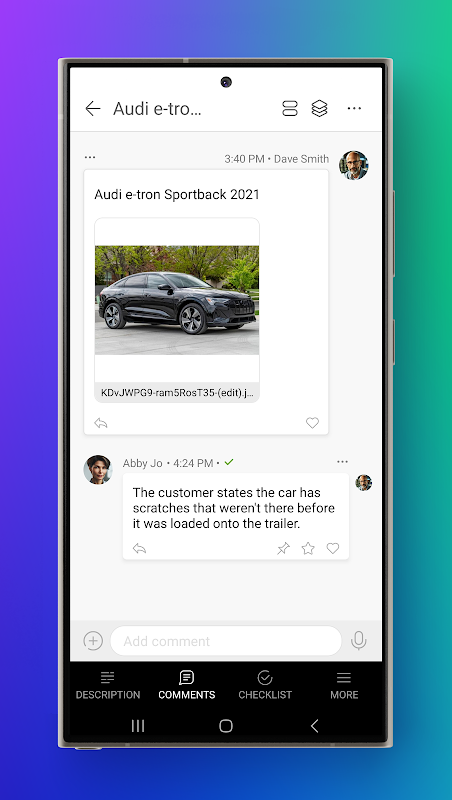 Cấu hình xảy ra thông qua dịch vụ web. Ứng dụng dành cho thiết bị di động cho phép bạn nhận tin nhắn từ đồng nghiệp và khách hàng - liên quan đến các nhiệm vụ, nhận xét và lời nhắc mới - và xử lý chúng một cách nhanh chóng và hiệu quả. Ứng dụng hiện đang được phát triển tích cực và mọi bản phát hành đều có các tính năng mới.