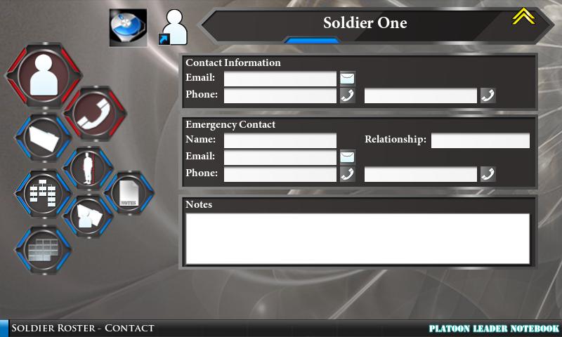 This application allows a platoon leader to organize a variety of information about their squad on hand in their phone.