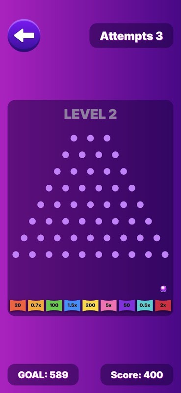 Một cung chuyển động bắt đầu ở đỉnh của một tấm ván màu tím, sau đó nhịp điệu và trọng lực kết thúc câu. Những tác động nhỏ bé điều khiển quả cầu qua một mạng lưới ánh sáng dịu nhẹ cho đến khi nó nằm trong một túi màu bên dưới. Mỗi khe mang theo tiếng thì thầm riêng của nó—đôi khi là một mảnh, đôi khi là một khoản tiền bất ngờ—và tổng số được cân nhắc so với một mục tiêu đang di chuyển. Các lần phóng được phân bổ, vì vậy mỗi lần thả đều giống như bản năng đánh cược hơn là sức mạnh. Khi các giai đoạn tiến triển, các mẫu chốt được sắp xếp lại một cách tinh tế, thúc đẩy bạn cảm nhận khả năng thay vì theo dõi thói quen. Điểm số tăng lên, dừng lại hoặc giảm xuống, nhưng nhịp đập thực sự ẩn trong khoảng dừng nửa giây đó trước khi quả bóng quyết định số phận của nó.