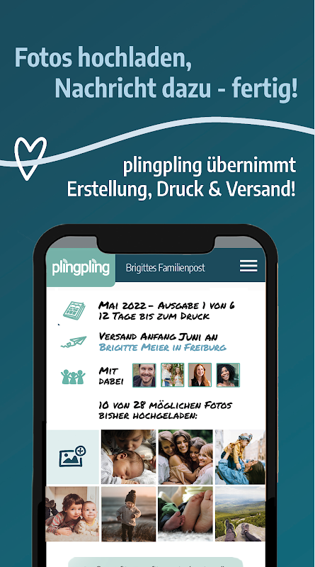 "Pling pling" làm nó với tin tức gia đình bây giờ cũng trong hộp thư! Tạo một tờ báo ảnh cá nhân, thường xuyên cho ông bà hoặc những người thân yêu khác chỉ trong vài cú nhấp chuột và để họ tham gia vào cuộc sống hàng ngày của bạn từ whatsapp và đồng nghiệp!