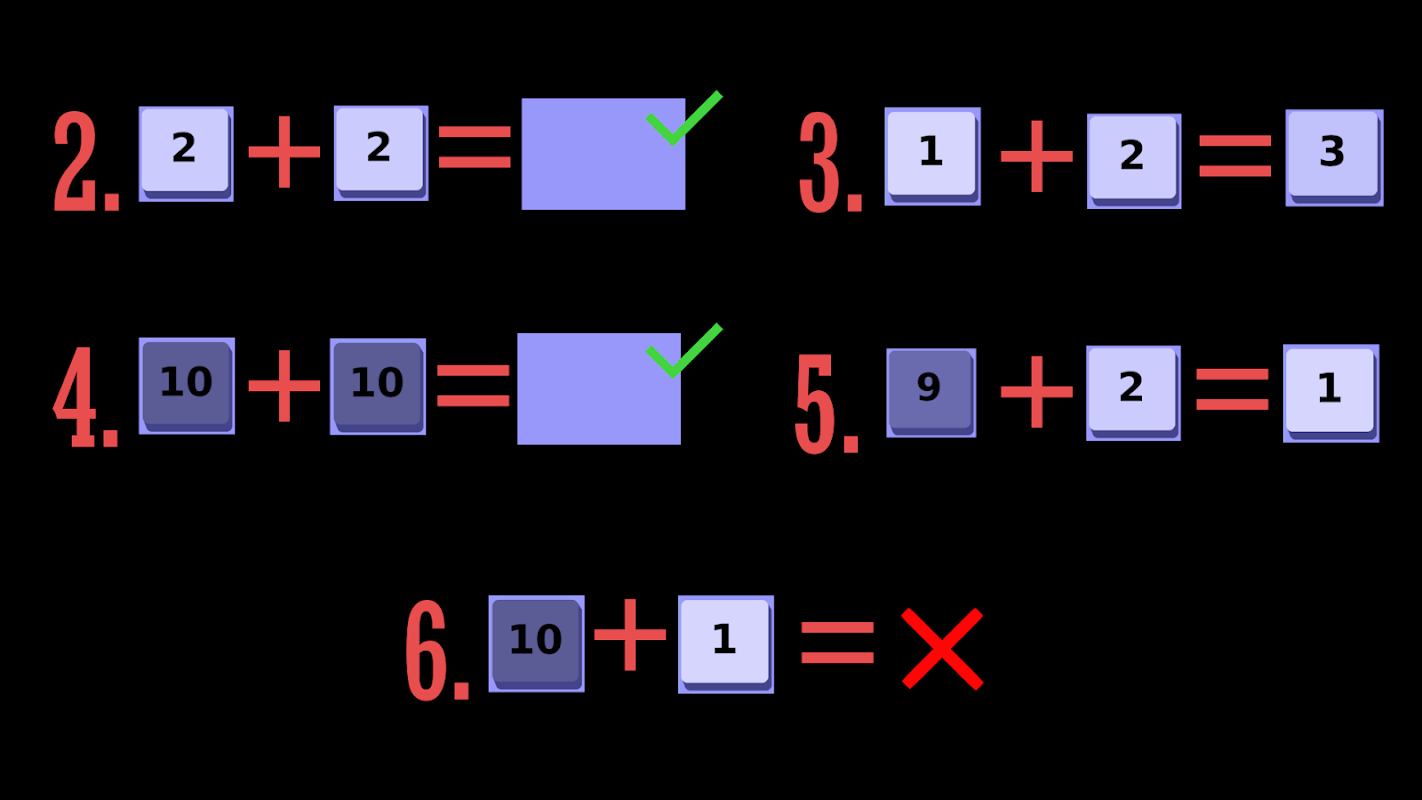 4. Nếu các khối được thêm vào nhiều hơn 10, chúng tôi chỉ sử dụng chữ số cuối cùng (9 và 2 tạo thành 1).