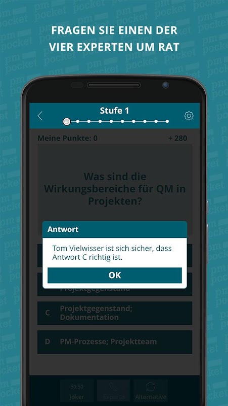 Bei einer falsch beantworteten Frage haben Sie leider verloren und müssen von vorn beginnen – aber erst Übung macht bekanntlich den Meister, bzw. den PM-Experten!