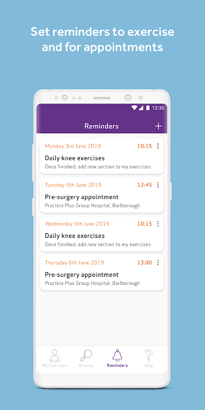 Ứng dụng cung cấp video và hướng dẫn bằng văn bản về các bài tập thể chất trước và sau phẫu thuật, cho phép bạn thiết lập một chế độ tập thể dục mạnh mẽ trước khi phẫu thuật và bạn cũng có thể tiếp tục sau đó, giúp bạn phục hồi nhanh chóng. Bạn thậm chí có thể lập kế hoạch cho chế độ luyện tập thể chất của riêng mình bằng chức năng nhắc nhở.