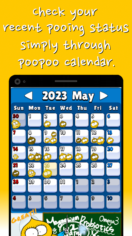 - Kiểm tra tình trạng sức khỏe poo-poo của bạn thông qua thông tin được ghi lại trên lịch.
