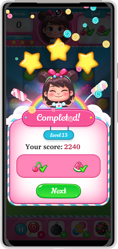 - Ghép, bắn và nổ kẹo để tiến tới cấp độ tiếp theo.