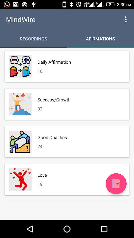 2)It is a known fact that your mind is more sensitive to your voice. For this reason, the app gives you an ability to record affirmations your Voice at any time.