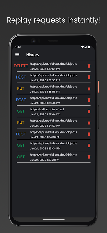 Kiểm tra API mọi lúc, mọi nơi—trực tiếp từ điện thoại thông minh của bạn! Postboy sắp xếp hợp lý các yêu cầu REST/HTTP (GET, POST, PUT, DELETE) với giao diện rõ ràng và trực quan. Lý tưởng cho các nhà phát triển và những người đam mê công nghệ, những người cần kiểm tra API nhanh chóng khi đang di chuyển.