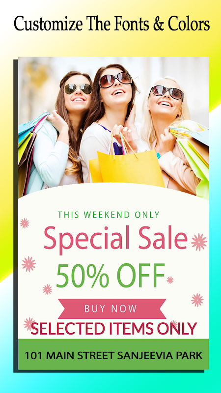 Ứng dụng tạo áp phích cũng hữu ích cho tiếp thị kỹ thuật số, xây dựng thương hiệu, chuyên gia tiếp thị, tiếp thị truyền thông xã hội, thiết kế đồ họa, in kỹ thuật số, quảng cáo, tạo quảng cáo, thiết kế thông báo ưu đãi, ảnh bìa cho cửa hàng, nhà hàng, văn phòng hoặc các trang web xã hội, kiểu chữ và tác phẩm nghệ thuật của bạn .