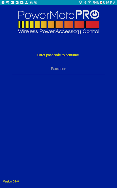 PowerMatePRO is the user interface app for use with the LogicBlue PowerMatePRO wireless power accessory control. This module is designed to be used to control motorized power accessories in a Recreational Vehicle (RV) such as power room expansion slides, power awnings, manual motorized power jacks and other similar products.
