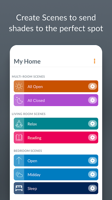 • Tạo cài đặt vị trí bóng râm tùy chỉnh được gọi là "Cảnh" để thuận tiện hoặc để quản lý nhu cầu riêng tư và ánh sáng tự nhiên của bạn suốt cả ngày.