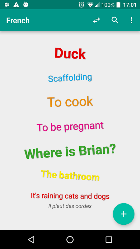 Củng cố việc ghi nhớ các từ của ngôn ngữ mà bạn muốn học bằng cách thường xuyên đăng ký ứng dụng. Bạn cũng có thể chọn để nhận thông báo ở những khoảng thời gian nhất định trong ngày, họ sẽ đề xuất bạn dịch từ trong danh sách của bạn. Ứng dụng cũng cung cấp một hoạt động để kiểm tra kiến thức của bạn.