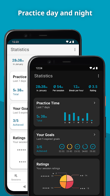 Thời gian thực hành! giúp bạn luyện tập nhạc cụ của mình với tính năng theo dõi thời gian và các tính năng thông minh khác.