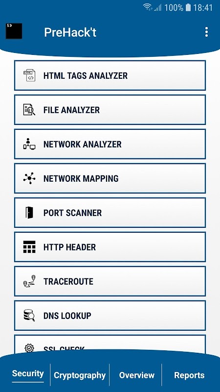 PreHack't, các hacker hộp công cụ, là một ứng dụng chuyên về an ninh mạng chia trong bốn lĩnh vực chính: