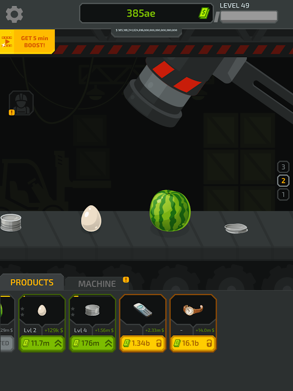 Destroy products in the most satisfying way. Upgrade your machine and increase your factory's income.