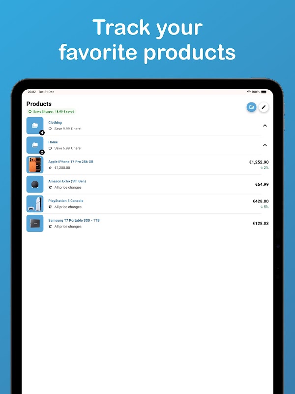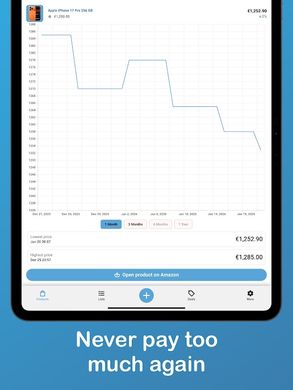Nhận thông báo ngay lập tức khi giá giảm, xem lịch sử giá chi tiết và nắm bắt các Ưu đãi chớp nhoáng trước khi chúng biến mất.