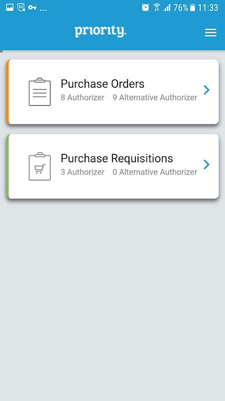 The Priority Purchase Approval app saves valuable time and helps boost process efficiency. The app enables company managers to view purchase order approvals and pending demands for approval directly from their mobile device. The app conveniently notifies the manage when a purchase order or demand requires approval. The manager can easily view purchase order/demand details, access all related documents, and either approve or reject the demand/s for additional information. The app works directly on top of the Priority ERP system, so when a demand is accepted/rejected, it's immediately processed according to a predefined list of authorized employees in Priority. The app is supported from Priority V 18.3 and requires licensing. It supports only organizations that work with Priority's authorization list.