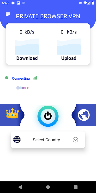 Try this free vpn Private Browser VPN Pro -Private Proxy VPN Browser for encrypted and Private access to the internet. Private Browser VPN Pro -Private Proxy VPN Browser is a completely FREE Vpn with a built in proxy browser app that provides FREE and unlimited connection to fast vpn proxy servers from around the world. This vpn has express access to a Private Browser service so you can surf the web while being encrypted and anonymous. There is no need to sign up or do any configuration, just simply click one button, and you can access the Internet securely and anonymously. When it comes to Internet privacy and security, Unlimited Proxy VPN - Private Proxy VPN Browser is an essential tool. With Unlimited Proxy VPN - With A Proxy Private Browser you will be able to connect to our super fast and unlimited vpn proxy servers, Unlimited Proxy VPN - Private Proxy VPN Browser encrypts your connection and blocks tracking from third parties and hackers and hides your up address and online activities, making it more secure than a typical proxy browser. We have built global proxy VPN express servers to instantly, anonymously, and constantly keep you connected to a vpn network while browsing. The Vpn servers includes America, Europe and Asia, and soon to be available for more countries. Most servers are free to use, you can click the flag and change server as any times as you want. Unlimited Proxy VPN - Private Proxy VPN Browser comes with a built-in private proxy vpn servers and Allows you to buy premium ad free servers. Protect your network traffic under WiFi hotspot Browse anonymously and securely without being tracked, and Encrypt your data.