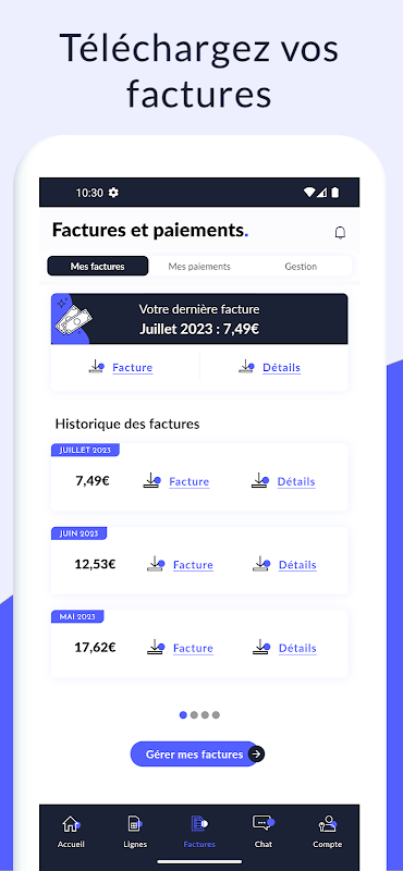 - Tải xuống hóa đơn của bạn (cổ điển và chi tiết) trong 2 năm qua và xem sự phát triển của chúng trong 6 tháng qua