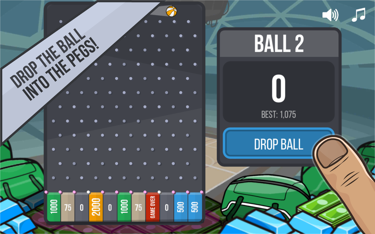 Drop the basketball through the pegs into the top prize slots! But watch out, the pegs are very bouncy!