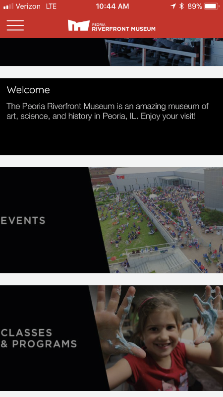 A new app for Peoria Riverfront Museum members and guests to enhance the museum experience. Features include events calendar, exhibits information, giant screen and planetarium information, enhanced multimedia information, quizzes, loyalty, coupons, and more.