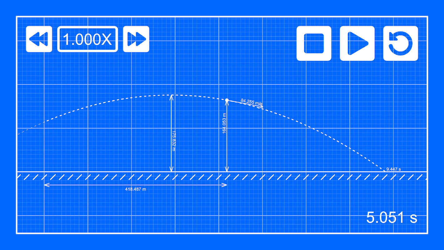 Từ các giá trị ban đầu (vận tốc, góc, chiều cao, độ nảy), ứng dụng sẽ tính toán: