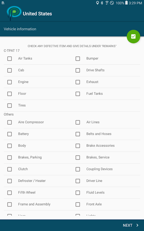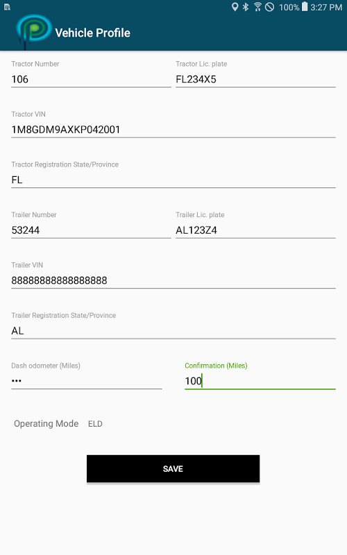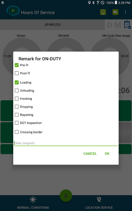 Ứng dụng tuân thủ để ghi lại tình trạng nhiệm vụ lái xe và đáp ứng các quy định sau: