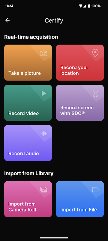 Lấy nội dung với Ứng dụng Protos rất đơn giản: chụp ảnh, quay video, âm thanh. Trong vòng chưa đầy 30 giây, bạn sẽ nhận được chứng nhận của mình với dấu thời gian và chữ ký số để đảm bảo một ngày nhất định của thời điểm mua, khiến bạn không thể thao túng nội dung đã mua. Sau đó, tất cả dữ liệu được tạo sẽ được cung cấp trên Báo cáo pháp y được chứng nhận bởi Tổ chức chứng nhận chính thức.
