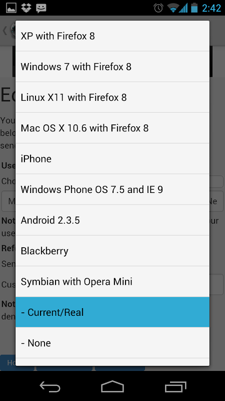 Phiên bản cũ của Proxy Browser For Android