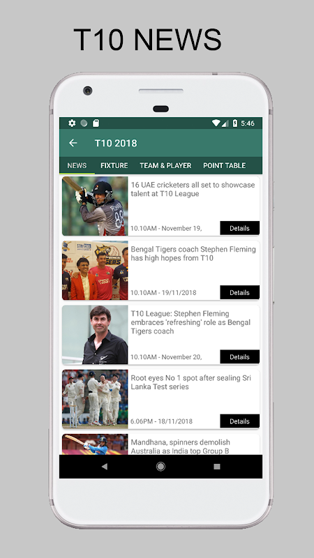 ***** टी 10 2018 विवरण के साथ अपने खिलाड़ियों को खोजें