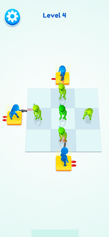 Tap the gunmen in the right order to kill all the zombies. Pay attention to how many bullets each of them have.