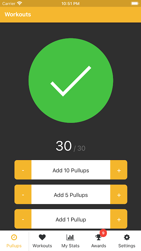 Với Pull Ups Counter, bạn có thể dễ dàng theo dõi số lần chống đẩy của mình suốt cả ngày. Xem thống kê và thông tin quan trọng về theo dõi đẩy lên của bạn. Đặt mục tiêu kéo lên hàng ngày.