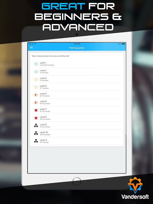 Xây dựng sức mạnh trên cơ thể, vóc dáng, và sức chịu đựng với up kéo! Ứng dụng này là rất tốt cho người mới bắt đầu làm việc trên kéo đầu tiên của họ lên, hoặc vận động viên cao cấp tìm kiếm để có được 50 + pull up.