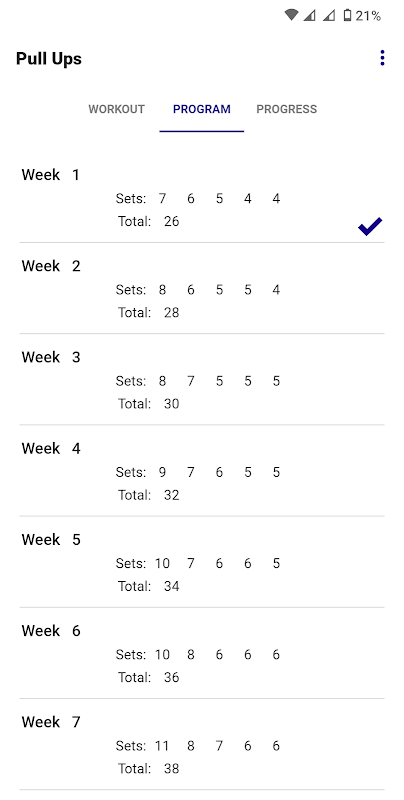 - the training is completed if the minimum number of pull-ups is performed (otherwise, the training must be repeated);