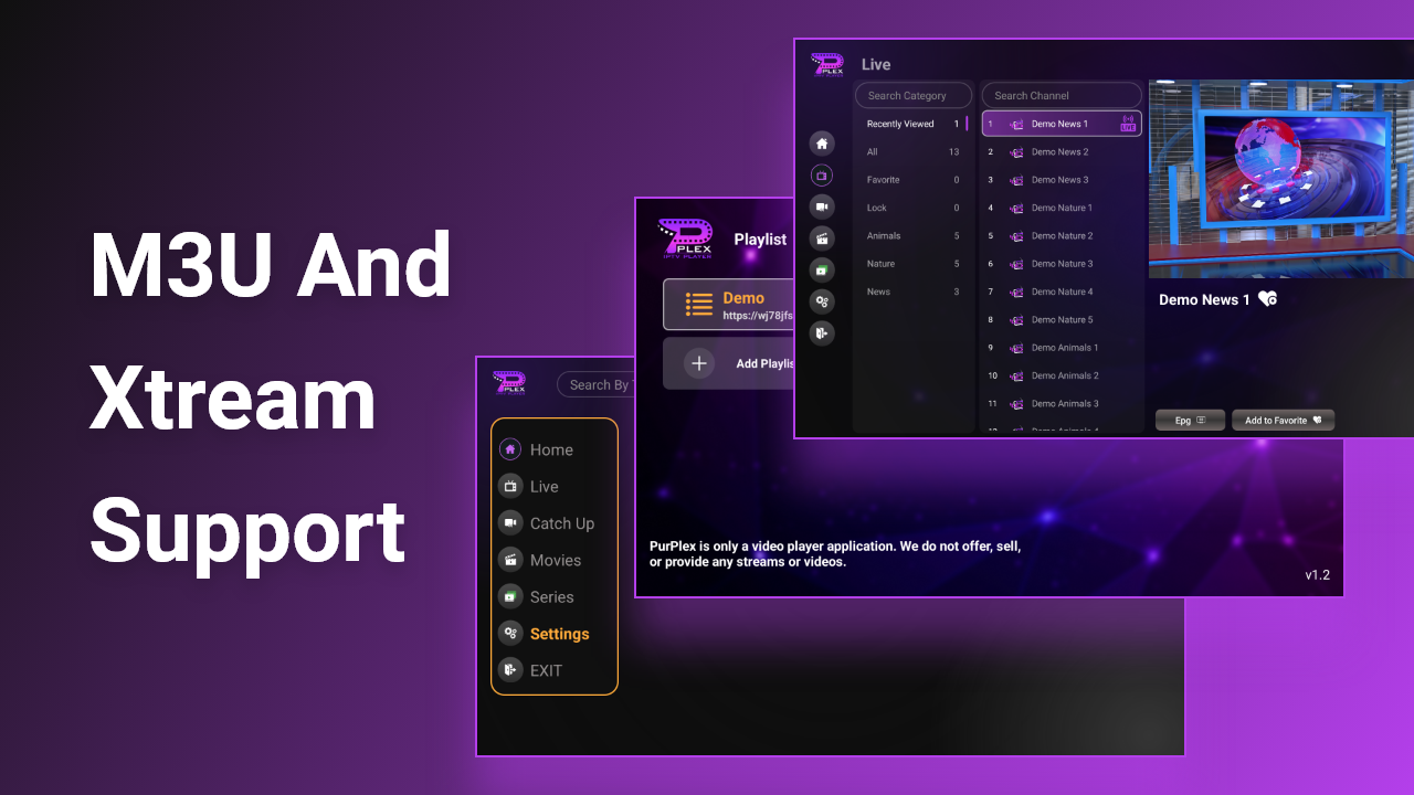 Trình phát IPTV PurPlex - Truyền phát danh sách phát của riêng bạn với M3U và Xtream.