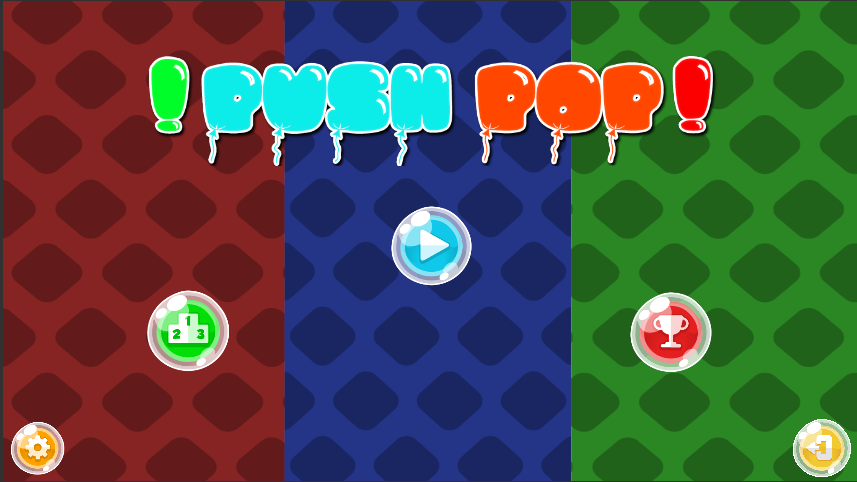 PushPoP consiste en explotar la mayor cantidad de burbujas posibles sin equivocarte, debes seleccionar el tipo de color pulsando los botones que están a los laterales de la pantalla de juego.