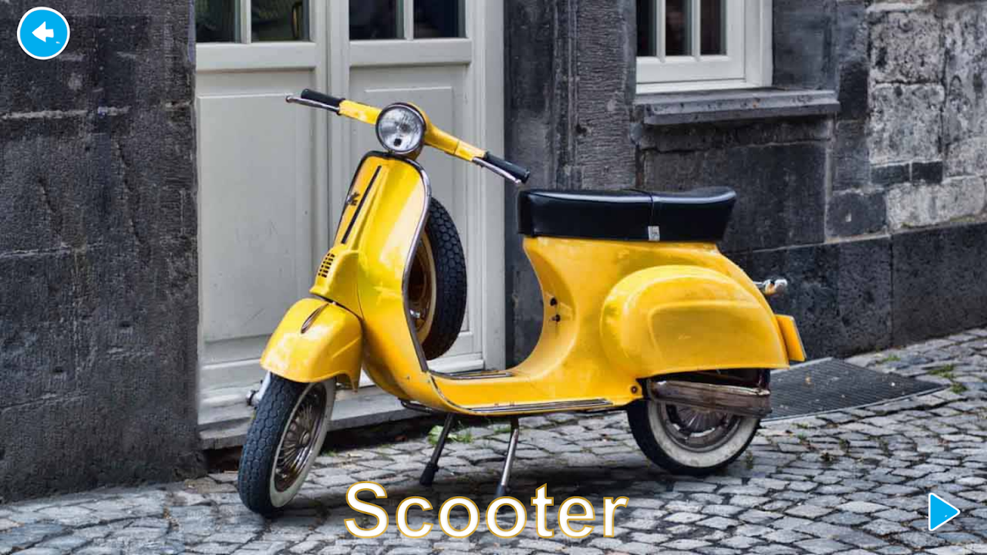 Ứng dụng tuyệt vời cho trẻ mới biết đi học từ vựng & âm thanh bằng các trò chơi về các phương tiện phổ biến.