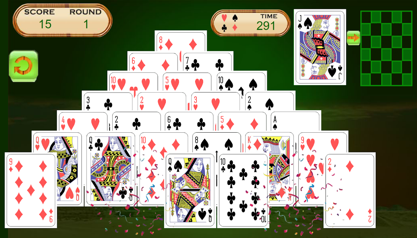 • Trò chơi Solitaire kim tự tháp thú vị và đầy thử thách.