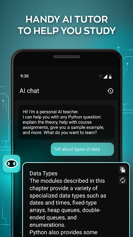 The app is a must-have tool for those who wish to make strides in the computer science field. With our enriched tutorials, practical tasks, and an ever-helpful AI tutor, Python Academy promises an immersive learning experience in Python programming. Join us now and begin your journey into the captivating world of computer science.