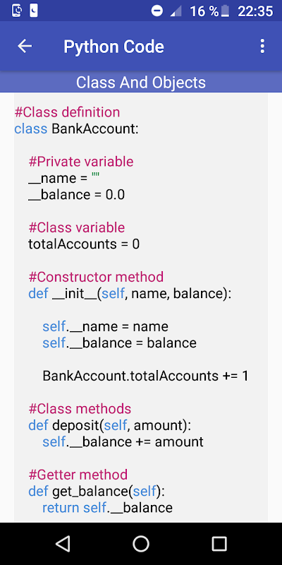 Ứng dụng này hoạt động như một cuốn cẩm nang bỏ túi cho các lập trình viên muốn tìm hiểu về Python.