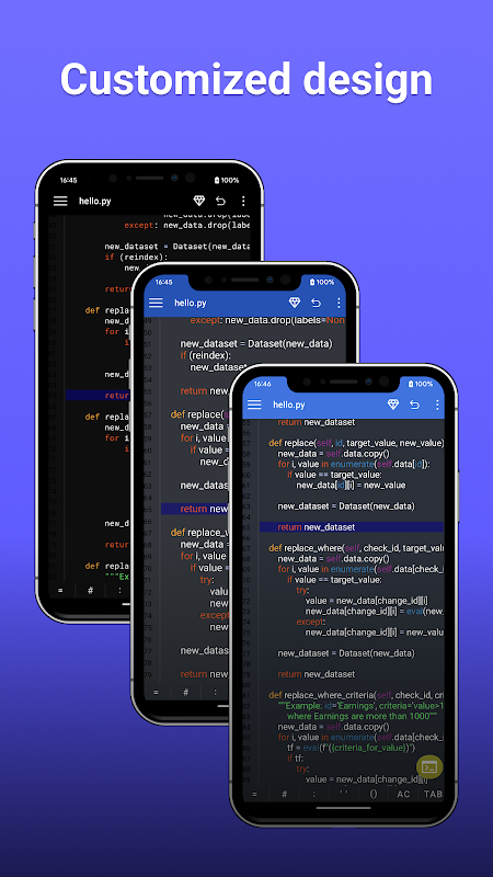 Khám phá mã hóa Python trên Android với Python Mobile - IDE. Là trình soạn thảo mã và IDE Python tốt nhất, nó cho phép bạn viết, chỉnh sửa và chạy mã Python một cách liền mạch, mọi lúc, mọi nơi. Giao diện thân thiện với người dùng, chủ đề có thể tùy chỉnh và khả năng chỉnh sửa mở rộng khiến nó trở thành lựa chọn phù hợp cho những người đam mê Python.