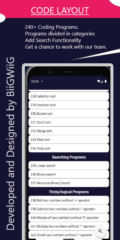 This app helps to solve Python Programming code and Pattern Python Programming . This app contains almost 500+ Programs and 2000+ Interview Examination Questions. This app has a very simple User Interface and contents can easily understood by User.