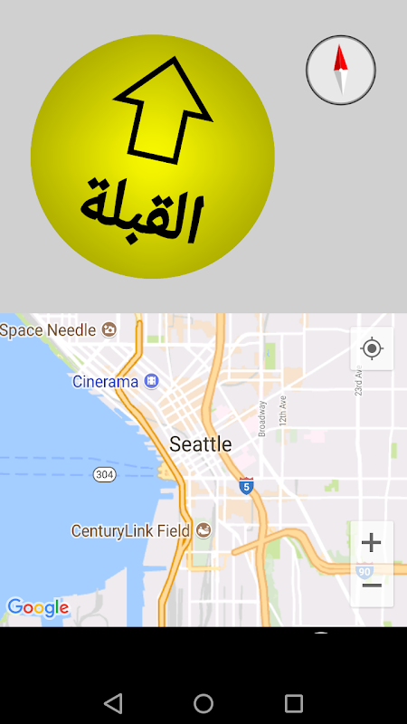 Ứng dụng này cho thấy một mũi tên chỉ hướng Mecca.