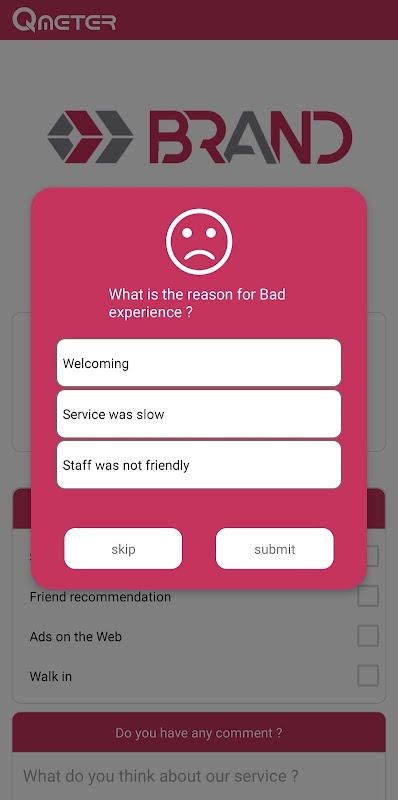 Qmeter là giải pháp cho mọi loại hình doanh nghiệp và tổ chức muốn nhận phản hồi từ khách hàng một cách đơn giản. Chúng tôi tạo ra hệ thống giúp các nhà lãnh đạo doanh nghiệp hiểu rõ nhu cầu của khách hàng và tìm hiểu những điểm yếu của họ. Ứng dụng này là một phần của dịch vụ dựa trên web Qmeter. Sử dụng nền tảng web của chúng tôi để cấu hình và thiết lập biểu mẫu phản hồi, phân tích dữ liệu thu thập được và đưa ra báo cáo chi tiết về sự hài lòng của khách hàng. Phần ứng dụng chỉ để minh họa mẫu phản hồi và nhận thông tin từ khách hàng sử dụng ứng dụng này