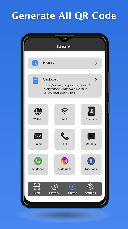 Máy quét mã QR cũng giúp bạn tạo mã QR và Mã vạch riêng cho sản phẩm, số điện thoại, id email và v.v.