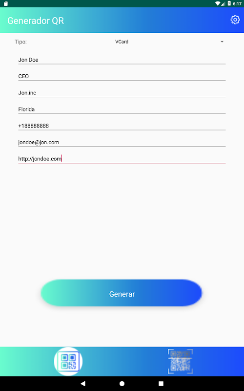 To generate alll this qr, are totally free you dont need to Pay anything. Can save the generated qr on Gallery or share it with your Friends. Let the people know about your business scannig your vCard or url QR. Promote your app on Google Play or your YouTube video with this app, just generate the Code and send it to the people. What are you waiting for its totally free.