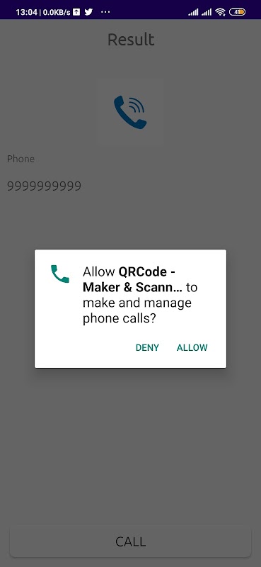 android.permission.WRITE_EXTERNAL_STORAGE - Cần có quyền này để lưu hình ảnh QRCode vào thiết bị di động.