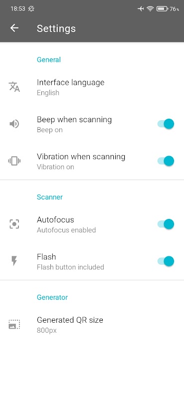 Ứng dụng có thể tạo mã QR. Thật dễ dàng để tạo QR của riêng bạn bằng các giải pháp có sẵn: Văn bản, URL, Liên hệ, Cuộc gọi điện thoại, SMS, WiFi , tin nhắn WhatsApp, v.v. Kết quả hoàn thành có thể được chia sẻ mà không bị hạn chế.