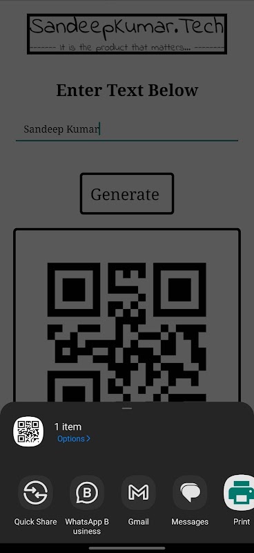 * Chia sẻ mã QR được tạo trực tiếp từ ứng dụng thông qua ứng dụng nhắn tin, email hoặc phương tiện truyền thông xã hội.